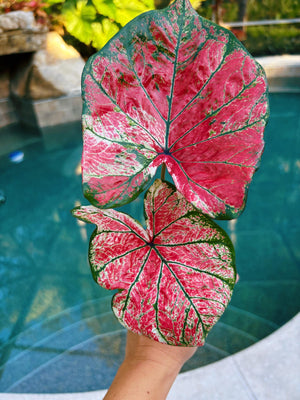 Actual Plant - Rare Seed Grown Hybrid Thai Caladium variegated red green leaf 3” potted house plant gift 43j
