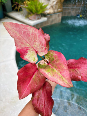 Actual Plant - Rare Seed Grown Hybrid Thai Caladium variegated red pink leaf 3” potted house plant gift