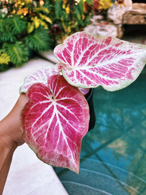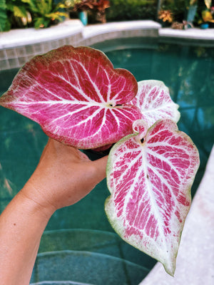 Actual Plant - Rare Seed Grown Hybrid Thai Caladium variegated white pink leaf 3” potted house plant gift 43s