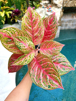 New plant to hit the market and she is stunning! Beautiful Aglaonema Miss Thailand 4” potted plant. Incredible color and striking pattern! Decorative pot is not included in the sale but plant will ship in its plastic pot.