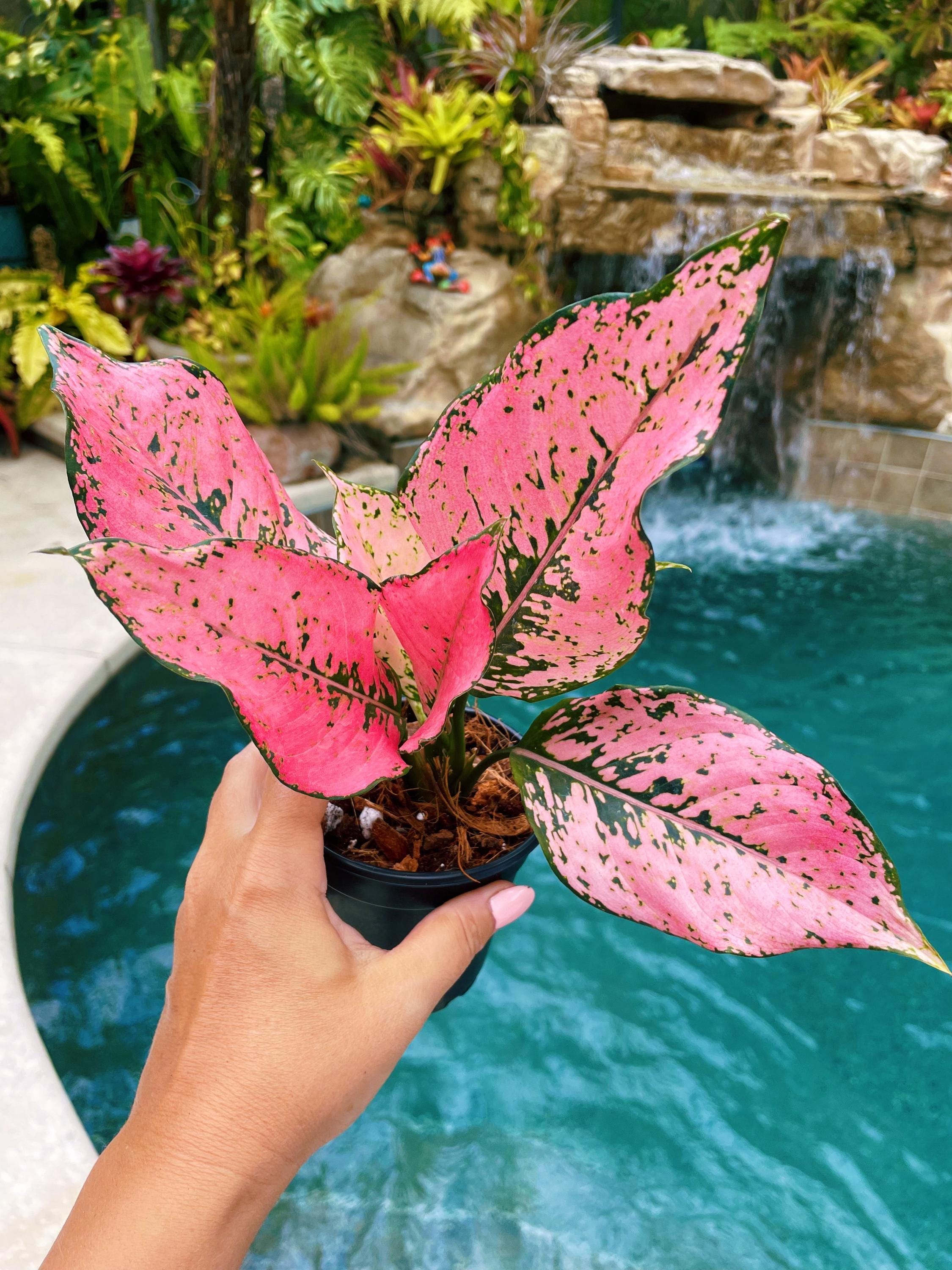 New plant to hit the market and she is stunning! Beautiful Aglaonema Pink Kamkoon 4 potted plant. Incredible color and striking pattern! Decorative pot is not included in the sale but plant will ship in its plastic pot.